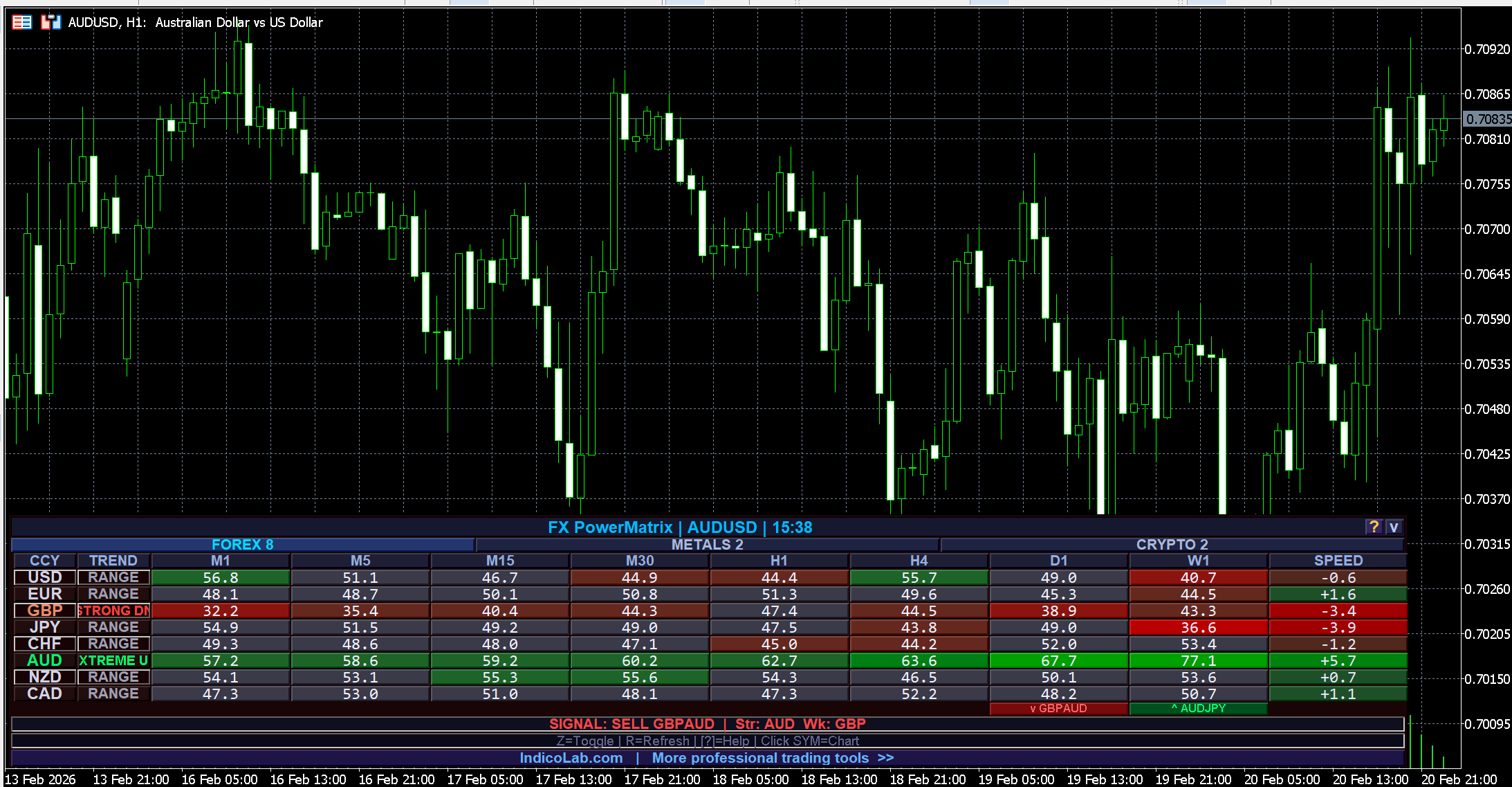 - ✦ 8 currencies × 8 timeframes — full strength matrix on one panel ✦ Forex + Metals + Crypto + Indices tabs with auto broker symbol detection ✦ Speed & trend analysis with 7-color gradient visualization ✦ Smart pair signals — shows the best BUY/SELL opportunity per timeframe ✦ Alerts via popup, email & push — never miss an extreme move ✦ Works on MT4 and MT5, any broker, zero lag