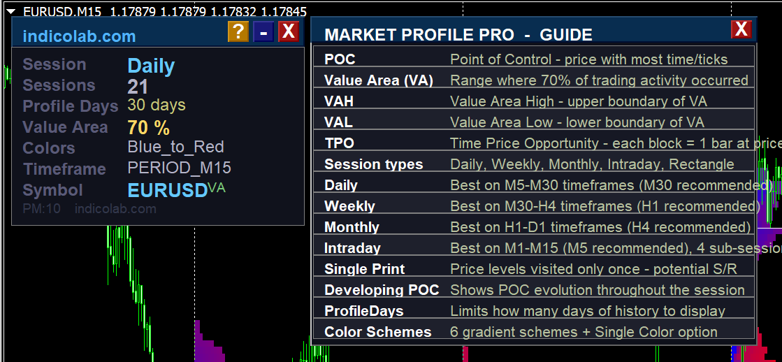 - Daily — one profile per trading day (best on M5–M30)